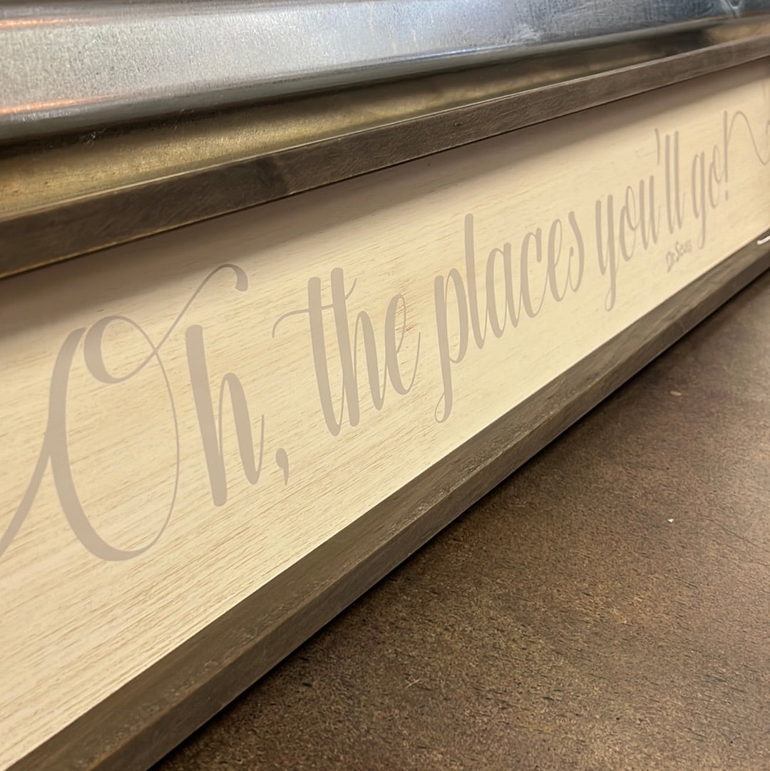This Dr. Seuss Sign is in great condition. It’s originally from Hobby Lobby with a price on the back of $49.99. Snag this for much less from us. This sign measures 36” x 6”.