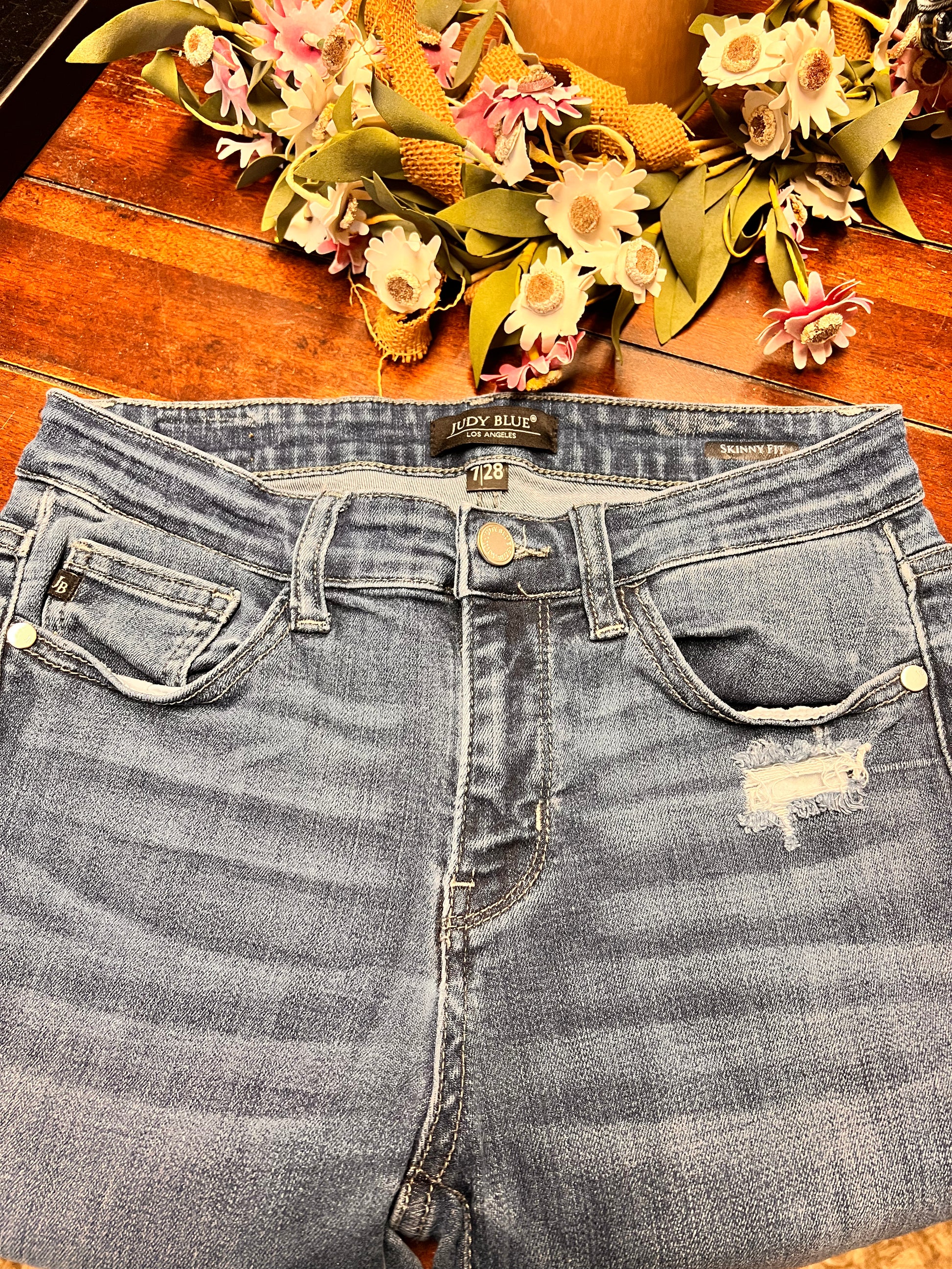 These Judy Blue Jeans are in great condition. They are a size 7/28 and they are a skinny fit. These are distressed jeans.